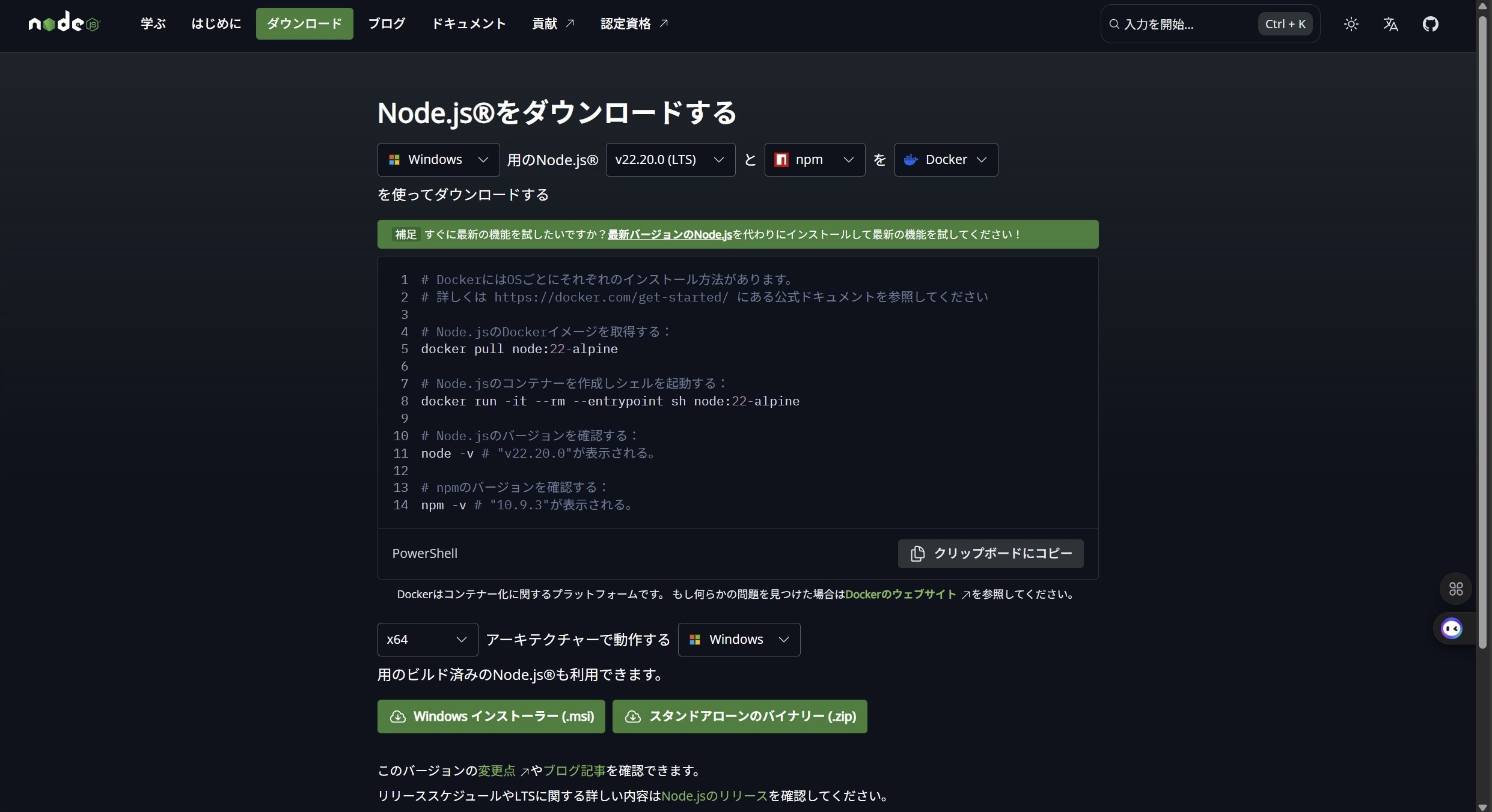 ・Windowsなら公式サイトから「LTS版」のインストーラーを選べばOK