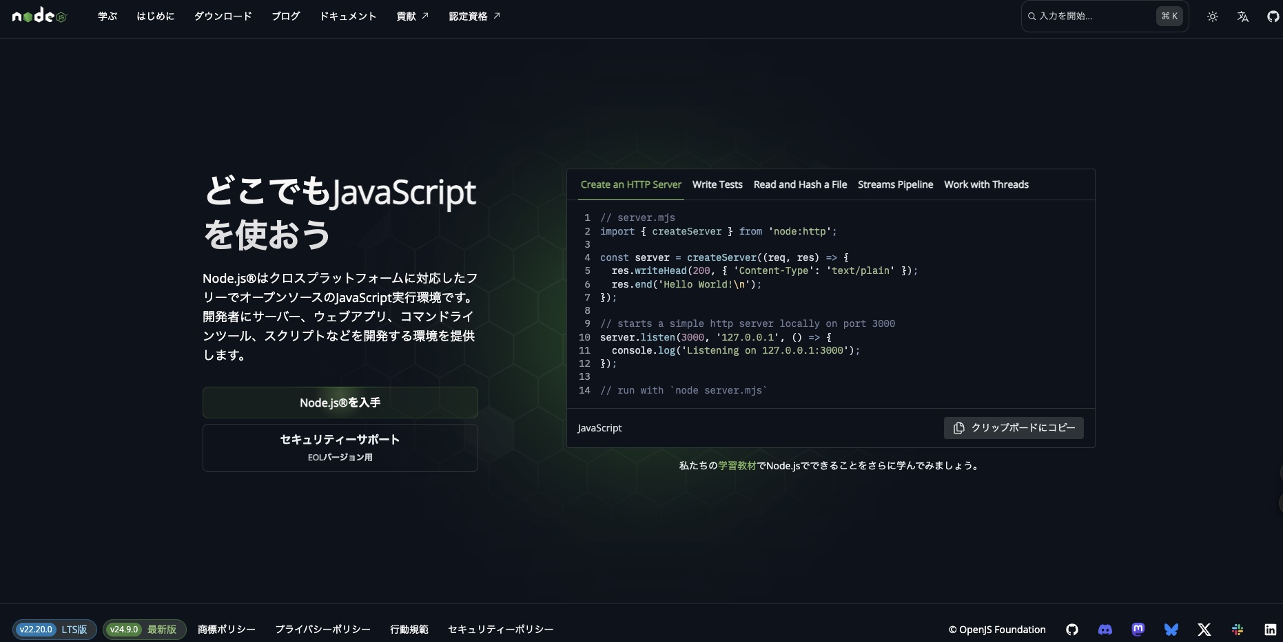 Node.jsをインストールすれば、VS Codeから直接JavaScriptを実行できるようになります。